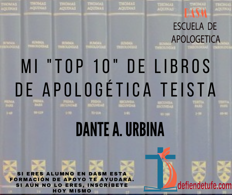He ahí, pues, la bibliografía que recomiendo. Cabe aclarar que este orden no es por nivel de complejidad y ni siquiera se pretende abarcar los libros más complejos. Pero son los libros que considero más relevantes y, de hecho, he encontrado que varios ateos -considerando sin más al teísmo como una posición “tonta” incapaz de producir algo de valor intelectual- simple y llanamente desconocen el contenido y reales argumentos de estas obras (espero se entienda, por ejemplo, la abismal diferencia entre saber que Santo Tomás de Aquino escribió un libro llamado Suma Teológica -o haber recibido una o dos clases al respecto- y haber realmente leído y analizado esta monumental obra). ¿Quieres tener una visión amplia y profunda sobre la apologética? ¡Pues lee todos estos libros! En realidad, considero que tanto creyentes como no creyentes deberían familiarizarse con esta literatura (los primeros para estar bien informados de los medios racionales para defender su fe y los segundos para evitar caer en la falacia de hombre de paja en los debates y -¿por qué no decirlo?- eventualmente poder llegar a la fe). Por supuesto, en la lista no está incluido mi libro ¿Dios existe?: El libro que todo creyente deberá (y todo ateo temerá) leer (https://danteaurbina.com/dios-existe-el-libro-que-todo-creyente-debera-y-todo-ateo-temera-leer/) dado que, siendo yo el autor, sería como “hacer trampa”. Pero como referencia diré que (con la sola excepción de Ciencia y Fe: ¿Un Equilibrio Posible?, que he leído recientemente) en ese libro se citan todas las obras aquí listadas…