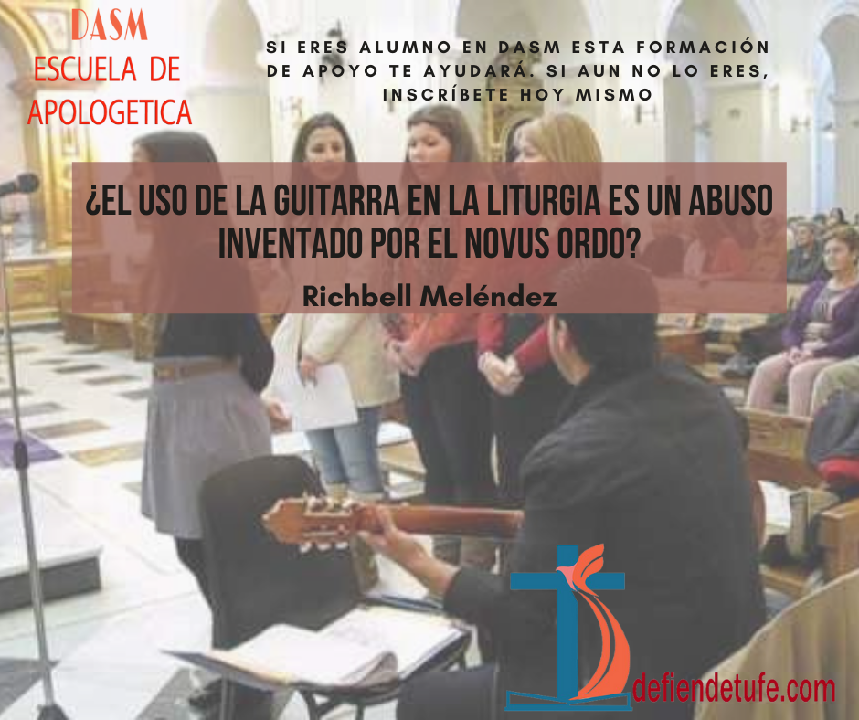 "La guitarra en la liturgia está prohibida. Lo explico en mi grupo música católica tradicional al que están invitados. Lean "Tra Le Sollecitudini". Un Motu Propio de San Pio X."