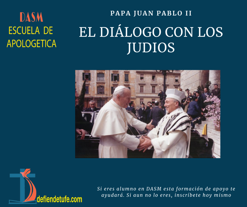 Es sabido que, por desgracia, la relación con nuestros hermanos judíos ha sido difícil desde los primeros tiempos de la Iglesia hasta nuestro siglo. Pero en esta larga y atormentada historia no han faltado momentos de diálogo sereno y constructivo. Conviene recordar, al respecto, el hecho significativo de que el filósofo y mártir san Justino, en el siglo II, dedicó su primera obra teológica, que lleva por título precisamente «Diálogo», a su confrontación con el judío Trifón. Asimismo, hay que señalar que la perspectiva del diálogo se halla muy presente en la literatura neo-judía contemporánea, la cual ha ejercido gran influjo en el pensamiento filosófico y teológico del siglo XX.