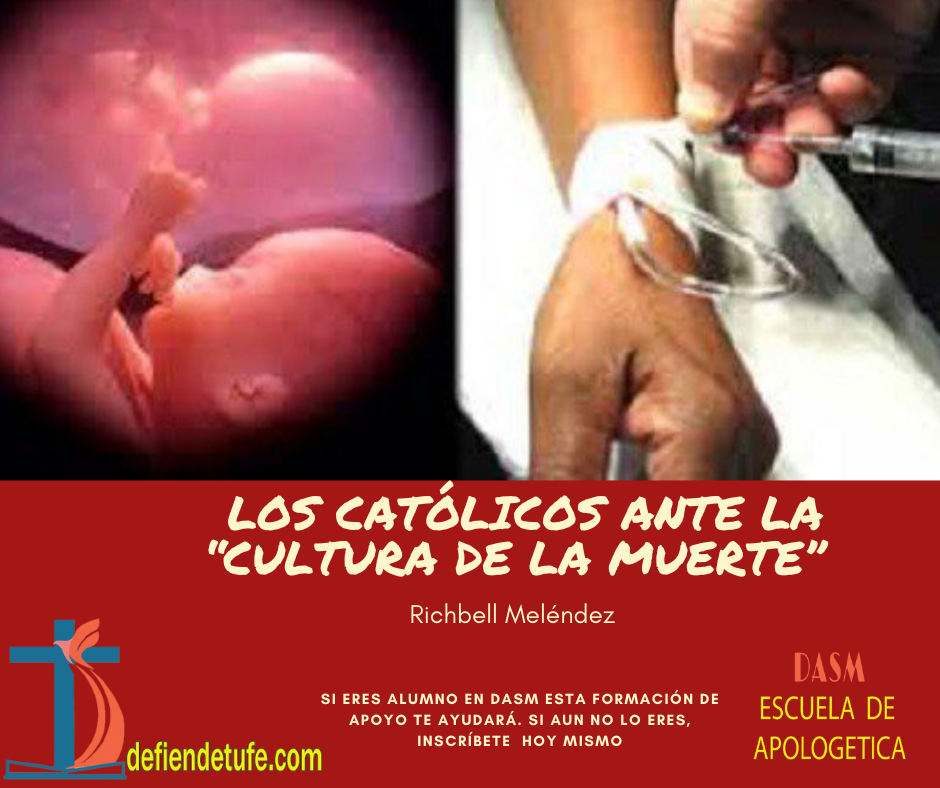 Los católicos formamos parte de una sociedad en la cual se puede apreciar mas una apología de la cultura de la muerte que la cultura de la vida.
