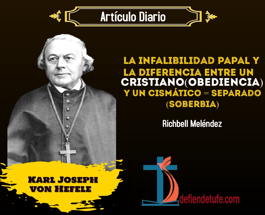 Si los cismáticos siguieran el ejemplo de Hefele y aceptaran con obediencia los dogmas proclamados por la Iglesia en vez de atribuirse infalibilidad en sus opiniones contrarias a la Iglesia, las cosas serian distintas. Pero bien sabemos que la soberbia algunas veces puede más que la razón.